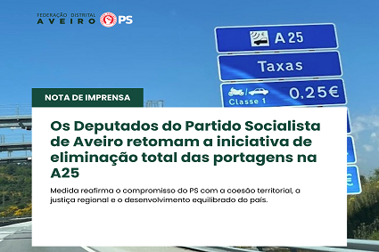 O Grupo Parlamentar do Partido Socialista apresentou um projeto-lei que visa exclusivamente a eliminação total das taxas de portagem da autoestrada A25, o que inclui os três pórticos localizados nos concelhos de Aveiro e de Albergaria-a-Velha, nos termos do que havia inscrito no seu programa eleitoral, o “alargamento da isenção na A25 a toda a sua extensão”, ao contrário do programa da coligação PSD/CDS, que ignorava por completo esta reivindicação da região de Aveiro.